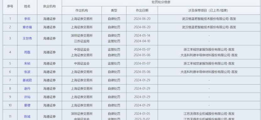 除了业绩持续下滑,海通证券今年在合规方面也面临巨大压力,根据中国证券从业协会公布的保荐代表人分类名单C,海通证券在今年已有11名员工受到处罚,其中就包括近日辞职的姜诚君。