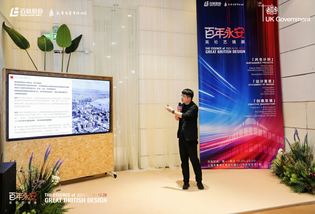 10月16日,英国驻上海总领事包迈岫(Matt Burney)、英国驻华贸易副使节施睿耀(Sohail Shaikh)、百联集团副总裁孙伟、百联股份董事长张申羽,以及多位建筑行业精英、专家学者、企业代表莅临百年永安-英伦艺境展开幕式现场,共同见证本次中英创意之约的璀璨启幕,本次活动将持续至10月28日,为中国观众提供近距离感受英国原创精神与匠心文化的机会。